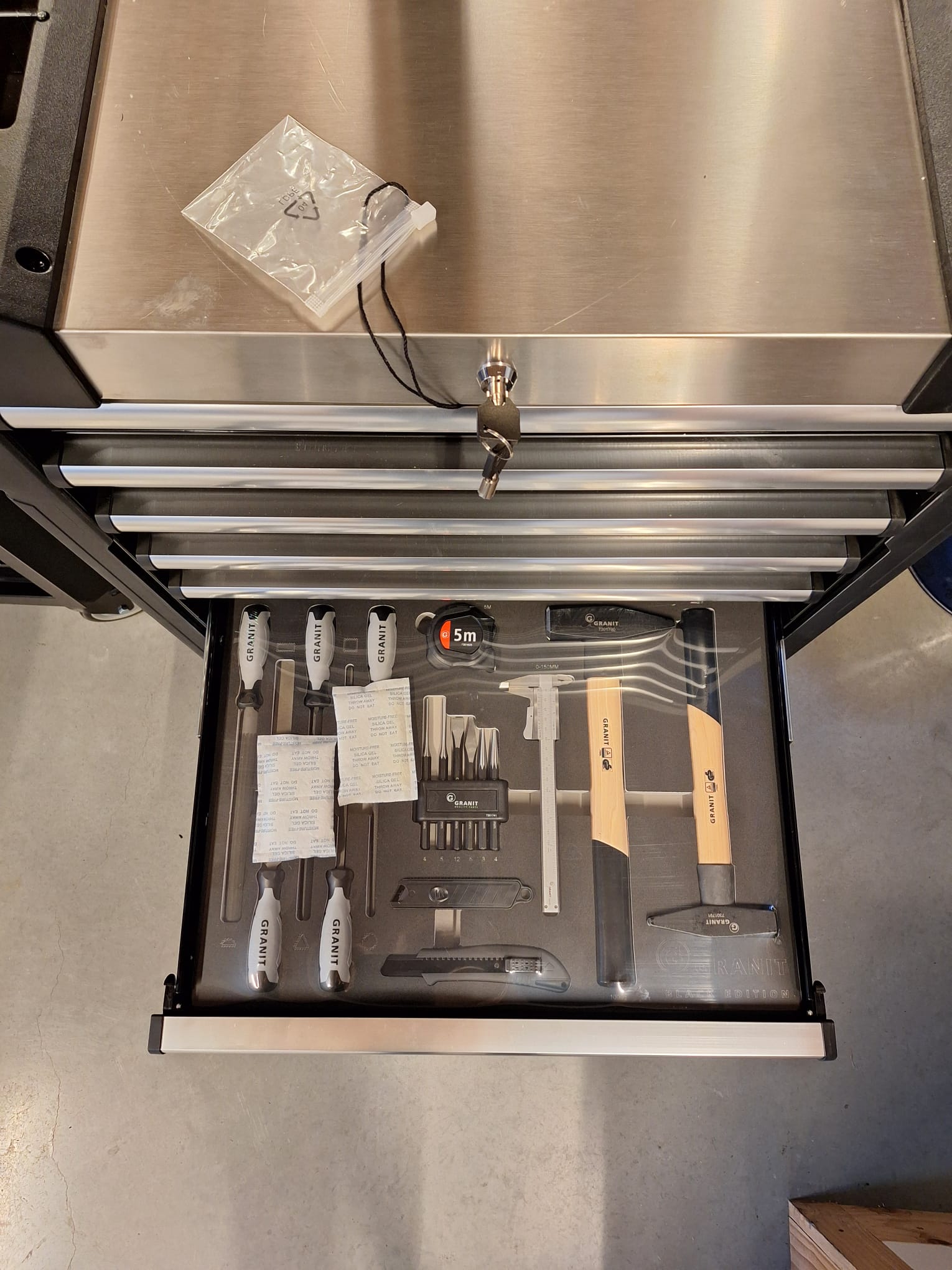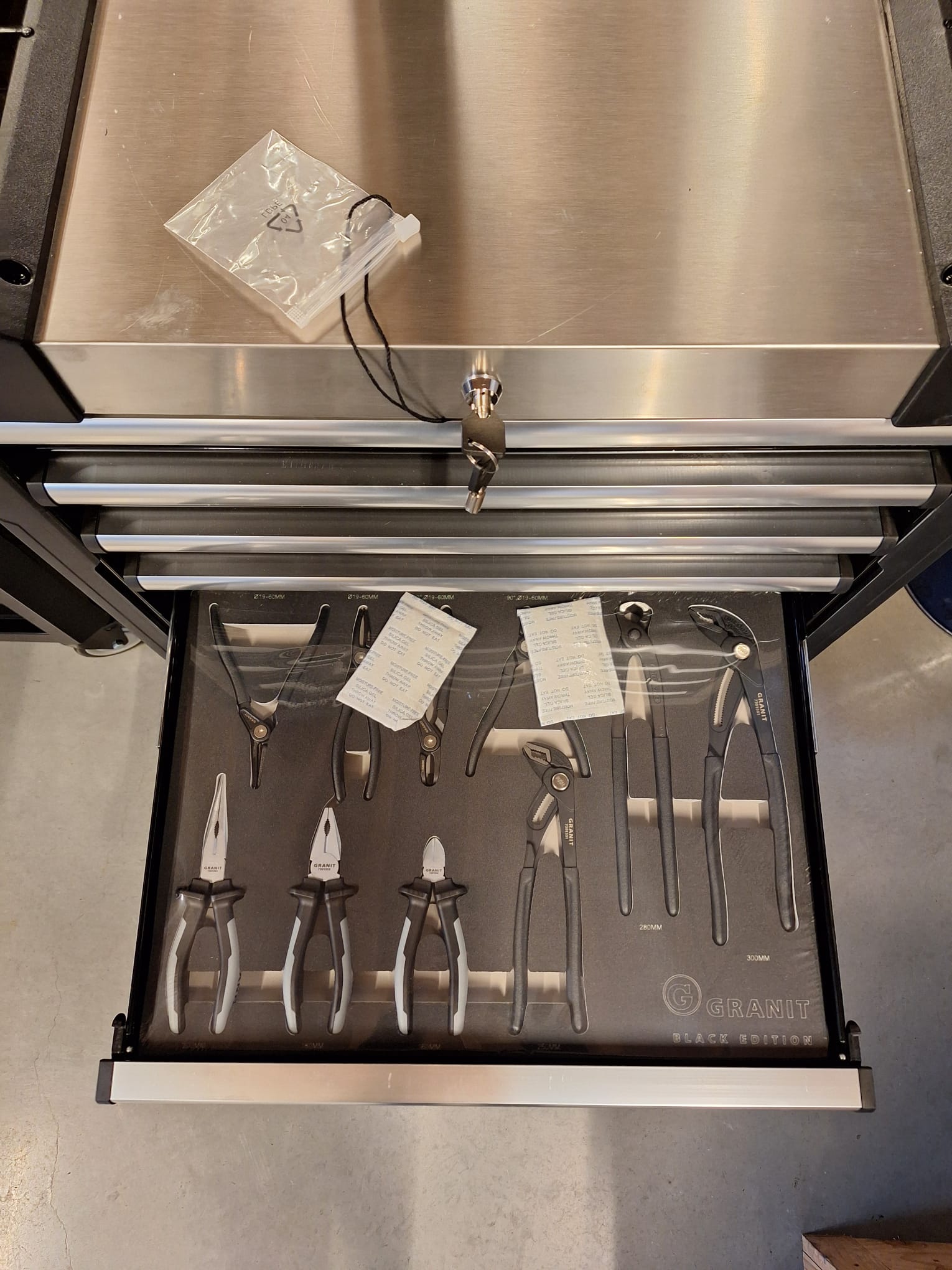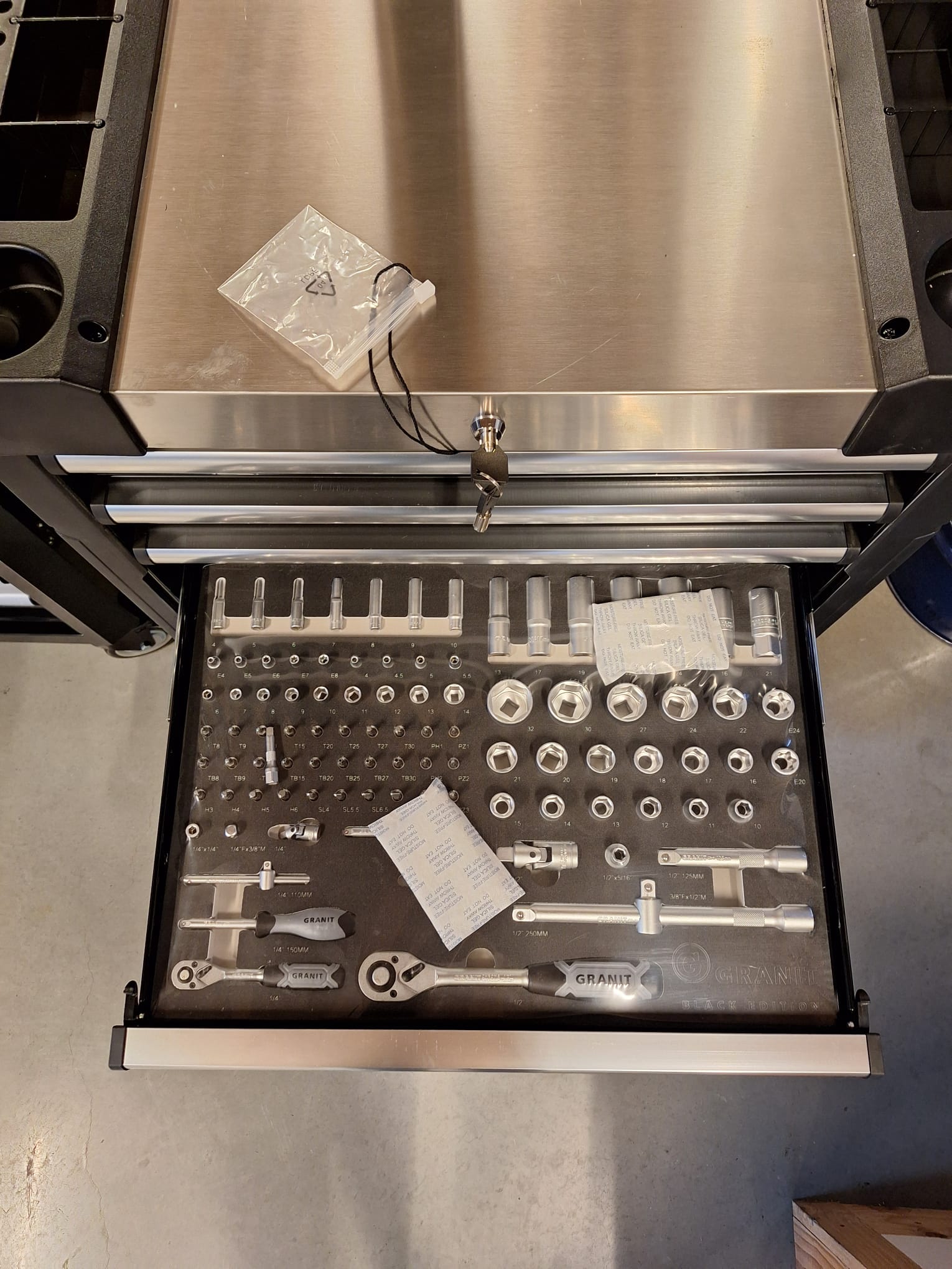 Gereedschapswagen Dynamic 2.0 inclusief 6 hoogwaardige modulesets voor 6 schuiflades, voorzien van professionele gereedschappen uit de GRANIT BLACK EDITION-lijn.